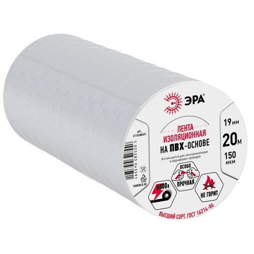 Изолента ПВХ 19ммх20м бел. ЭРА C0036542