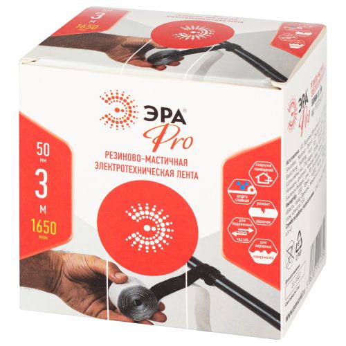 Изолента резиново-мастичная электротехническая лента 50ммх3м PRO PRORUMAS50 1.65мм черн. ЭРА Б0057481