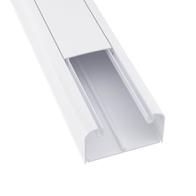 Кабель-канал имеет длину 2 м. Защитная пленка на изделии предохраняет кабель-канал от царапин и потертостей до окончания монтажа. Полезное сечение – 3682 мм. Материал: поливинилохлорид (ПВХ). Цвет – белый.