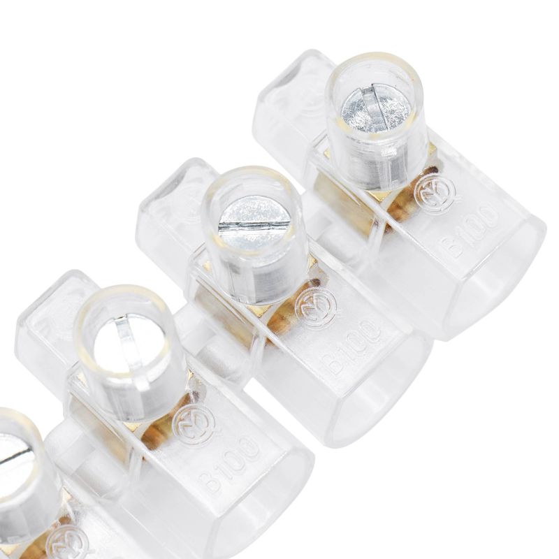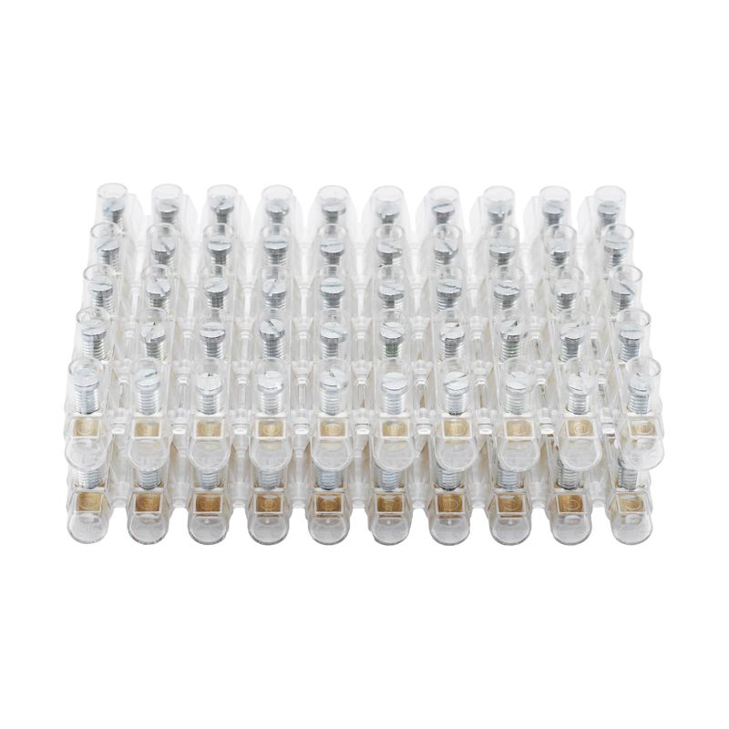 Зажим винтовой c одним отверстием предназначен для обеспечения надежного электрического соединения с помощью винтовой фиксации проводников между собой в цепях переменного или постоянного тока с напряжением до 400 В. Распространенное применение в распаячных коробках (для подключения электрических выключателей, розеток и т.д.) для подключения люстр и других световых приборов. Максимальное сечение проводника – 6 мм2. Прочные винты из оцинкованной стали, непозволящие сорвать резьбу. Материал изоляции – поликарбонат самозатухающий. Повышенная термоустойчивость: до +130 °С.