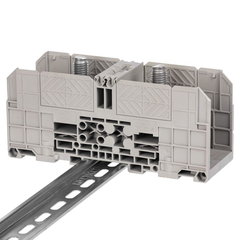 Серый цвет, 2 точки подключения, 185 мм2. Монтаж перемычек на шпильку клеммы. Габариты (В?Ш?Г) 79?163?55 мм.