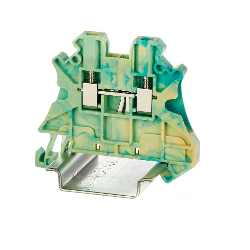 Клемма для заземления с винтовым зажимом предназначена для соединения двух проводников. Монтаж на DIN-рейку OMEGA. Температура эксплуатации от -40 до +105°C. Корпус выполнен из ПА 6.6 с классом горючести V0 UL-94. Имеет электрический контакт с DIN-рейкой.