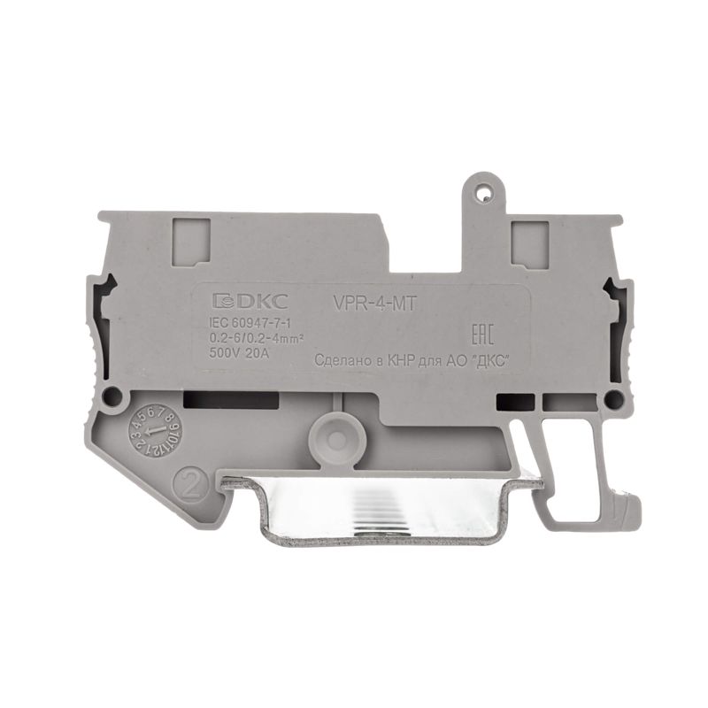 Клемма с размыкателем зажим push-in 2 точки подключения 4кв.мм сер. DKC VPR-4-TG