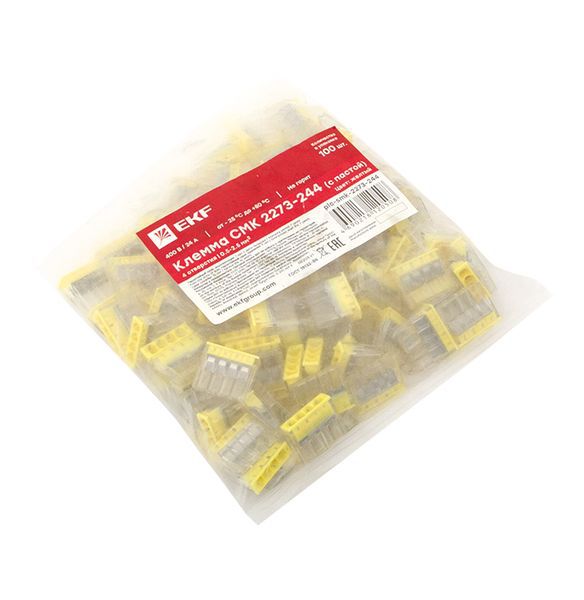 Клемма строительно-монтажная СМК 2273-244 4-проводная 0.5-2.5кв.мм с пастой (уп.100шт) PROxima EKF plc-smk-2273-244