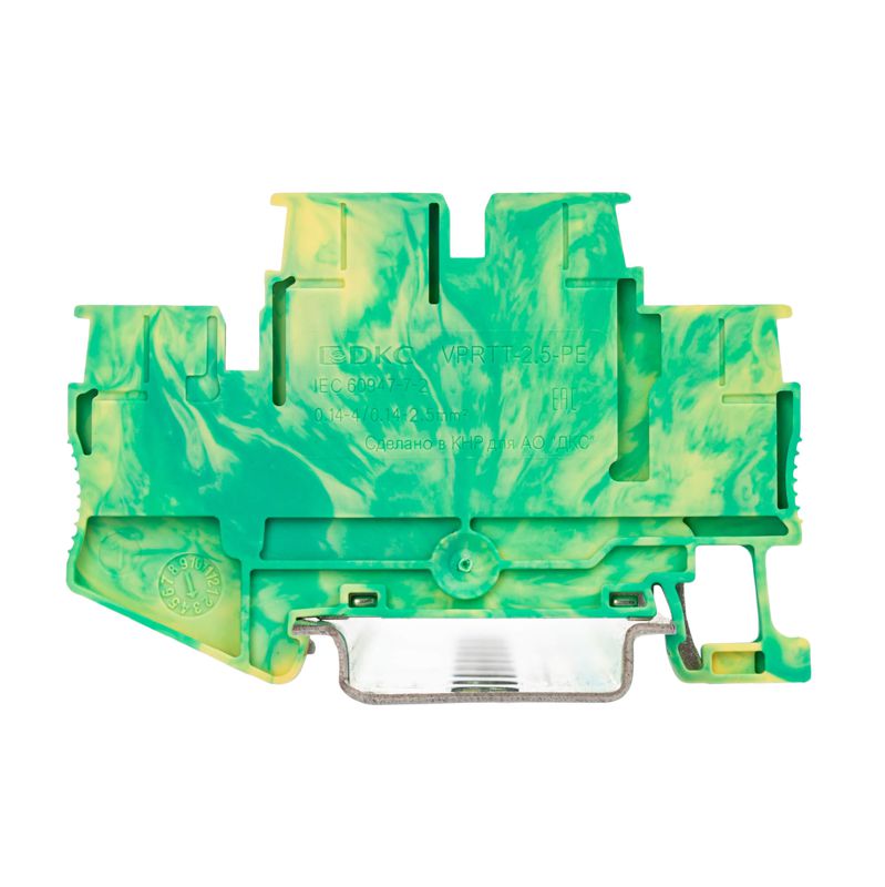 Клемма заземления двухуровневая зажим push-in 4 точки подключения 2.5 кв.мм DKC VPRTT-2.5-PE-YG