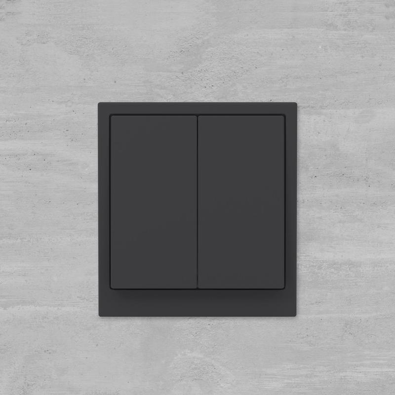 Двухклавишная кнопка применяется для кратковременного включения источника питания. Предназначена для скрытого монтажа в стену. Характеристики устройства: номинальное напряжение 250 В, номинальный ток 10 А. Материал: металл, поликарбонат. Пластиковые элементы имеют цвет "Черный уголь". Для декоративного оформления электроустановочных изделий используются рамки серии "KANT".