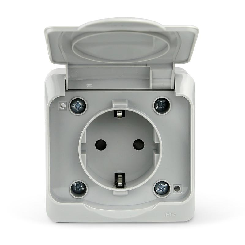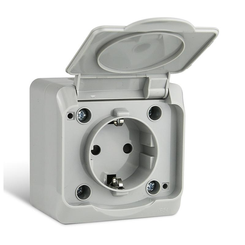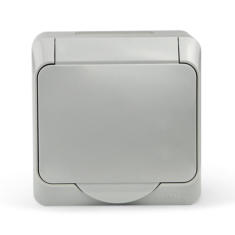 Розетка 1-м ОП Мурманск 16А IP54 с заземл. защ. шторки с крышкой сер. EKF EFR16-029-30-54