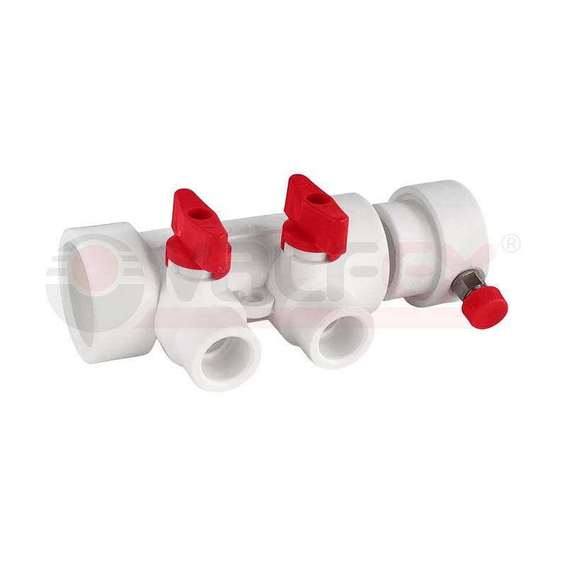 Коллектор универсальный с отсечными кранами 32х20 на 2 выхода (12/1) бел. VALFEX 101133202 -