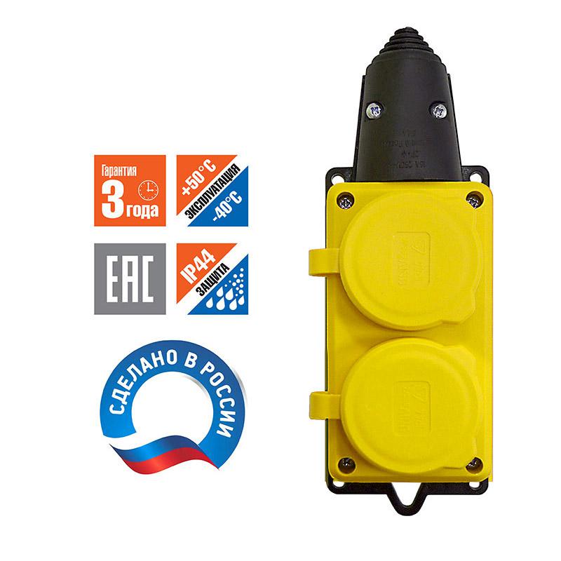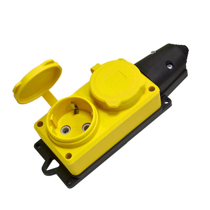 Колодка удлинителя 2-м 1ф с заглушками компакт каучук желт. Universal 3082