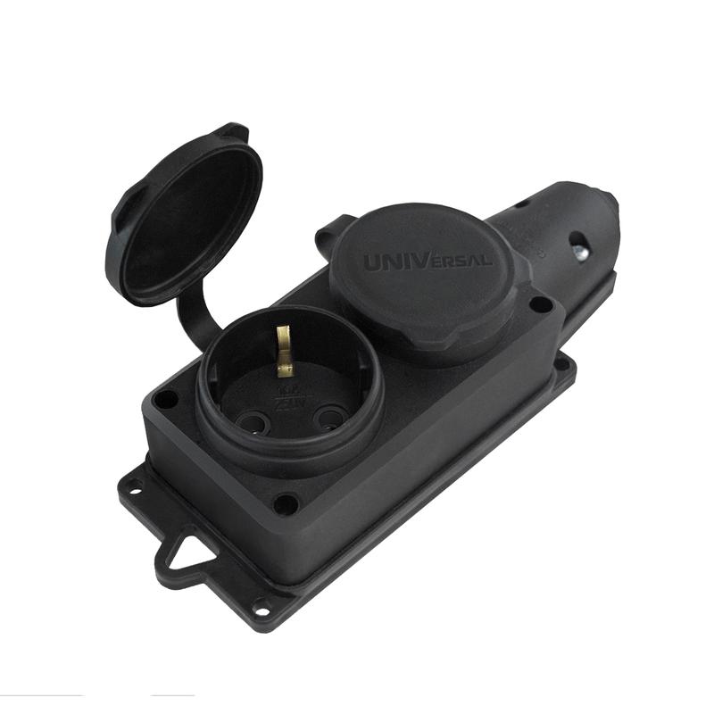Колодка удлинителя 2-м Компакт 1ф с заглушками каучук UNIVersal 1788