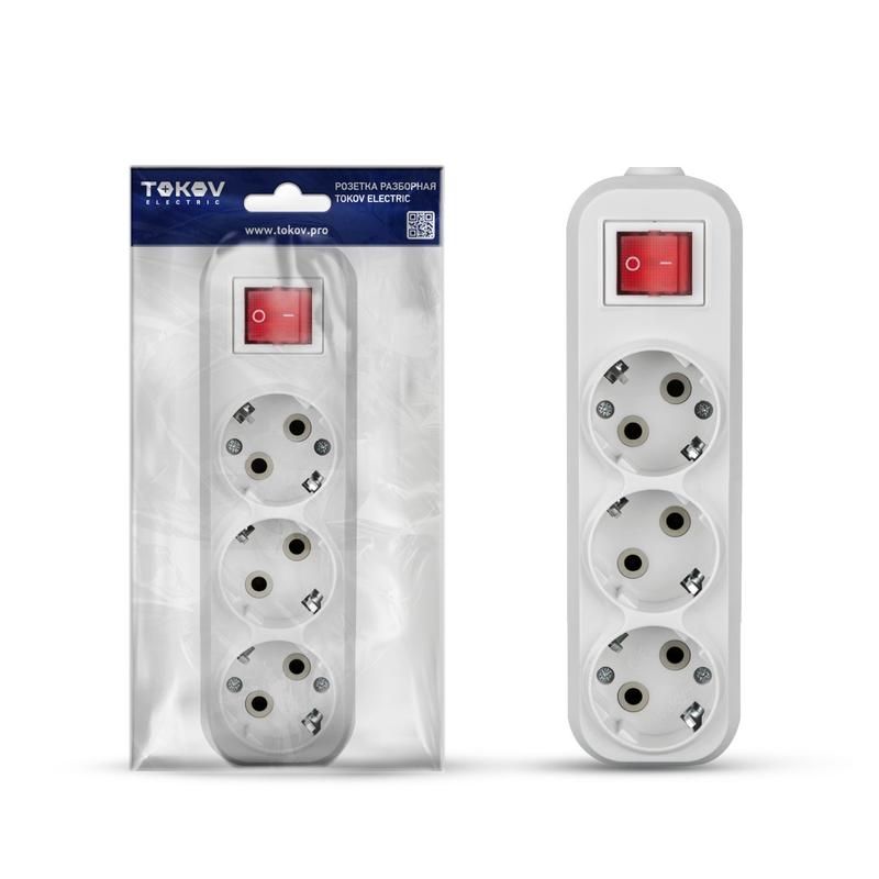 Колодка удлинителя 3-м 16А с заземл. с выкл. АБС-пластик бел. TOKOV ELECTRIC TKE-C01-KU3-ZV -