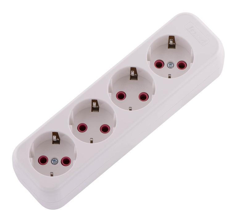 Удлинители имеют прямоугольный корпус с двумя, тремя и четырьмя гнездами розеток соответственно. Гнезда размещены под углом 45° относительно корпуса, что позволяет задействовать максимальное количество гнезд даже при подключении угловых вилок и габаритных адаптеров. Удлинители данных типов позволяют подключать электроприборы с суммарной мощностью до 1300Вт.