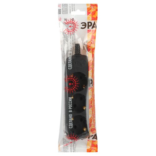 Колодка ЭРА KX-3e-B на 3 розетки, с заземлением, черная. Максимальная мощность - 16 А/3500 Вт. Для кабеля до 3х1,5мм2
