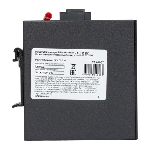 Коммутатор неуправляемый промышленный U-5T 5 портов 10/100Base-T(X) RJ45 монтаж на DIN-рейку TSX EKF TSX-U-5T -