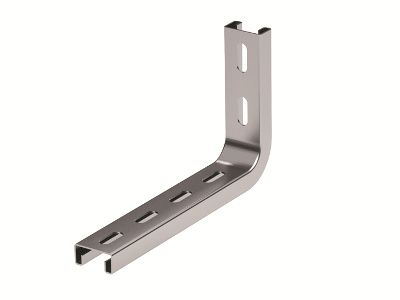 Применяется для монтажа трассы лотков с малой нагрузкой. Крепление к стене. Сталь толщиной 2,5 мм. 2 отверстия в основании. Предназначена для лотков шириной 400 мм.