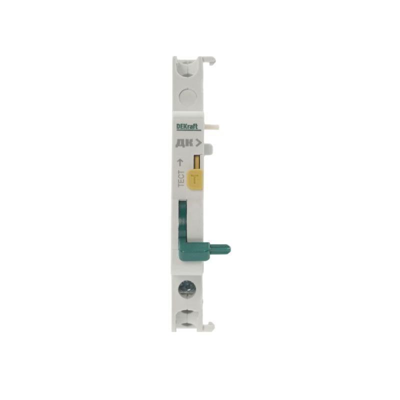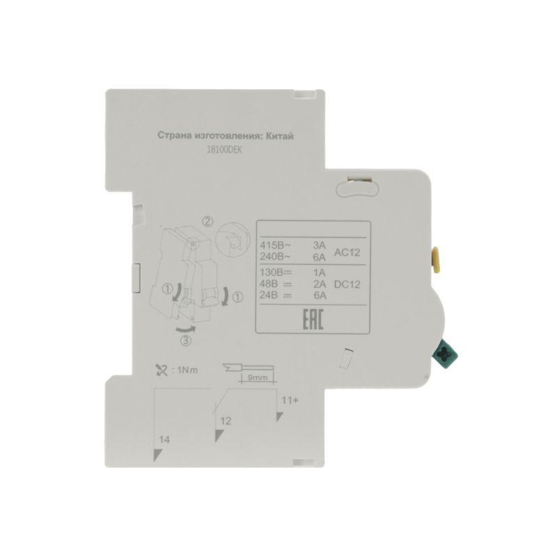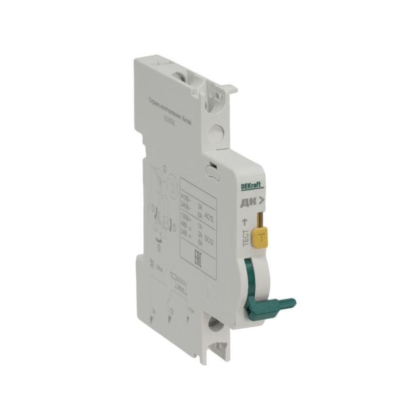Контакт дополнительный ДК-101 для автоматических выключателей серии ВА-101 Dekraft; предназначен для сигнализации состояния выключателя ВКЛ/ОТКЛ; тип контакта переключающий; ширина 9 мм; присоединение к выключателю слева.