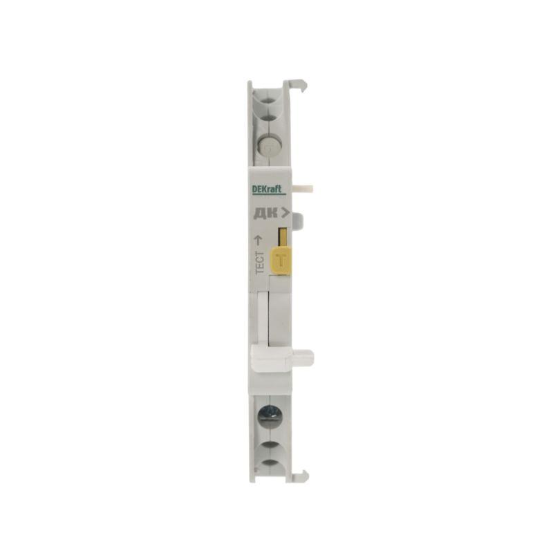 Контакт дополнительный ДК-105 для автоматических выключателей серии ВА-105 и ВА-105 DC Dekraft; предназначен для сигнализации состояния выключателя ВКЛ/ОТКЛ; тип контакта переключающий; ширина 9 мм; присоединение к выключателю слева.