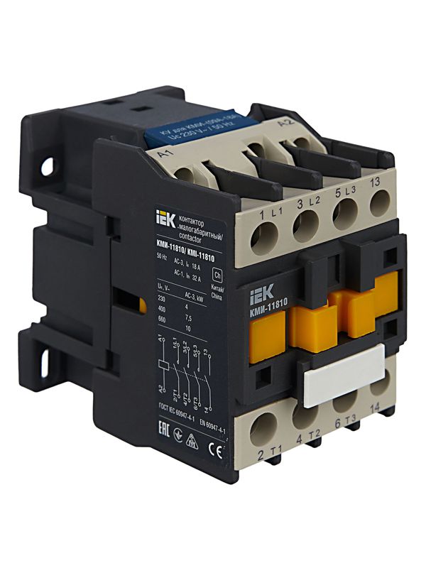 Малогабаритные контакторы переменного тока общепромышленного применения КМИ на ток нагрузки от 9 до 95 А предназначены для пуска, остановки и реверсирования асинхронных электродвигателей с короткозамкнутым ротором на напряжение до 660 В (категория применения АС-3), а также для дистанционного управления цепями освещения, нагревательными цепями и различными малоиндуктивными нагрузками (категория применения АС-1). Все исполнения на ток нагрузки до 40 А имеют одну группу замыкающих или размыкающих дополнительных контактов. Исполнения на ток нагрузки свыше 40 А - две группы (замыкающую и размыкающую).