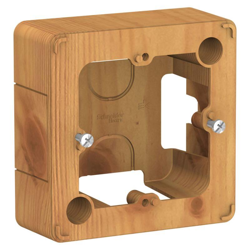 Коробка Systeme Electric (ранее Schneider Electric) BLANCA (ясень) подъемная, однопостовая предназначена для наружного монтажа электроустановочных изделий серии Blanca. Коробка рассчитана на установку розетки до 32 А. Изделия цвета Ясень обладают уникальным рисунком, напоминающим древесный сруб. Имеется возможность соединения нескольких коробок. Размеры коробки: 86*86*34 мм. Корпус изделия выполнен из ABS-пластика.