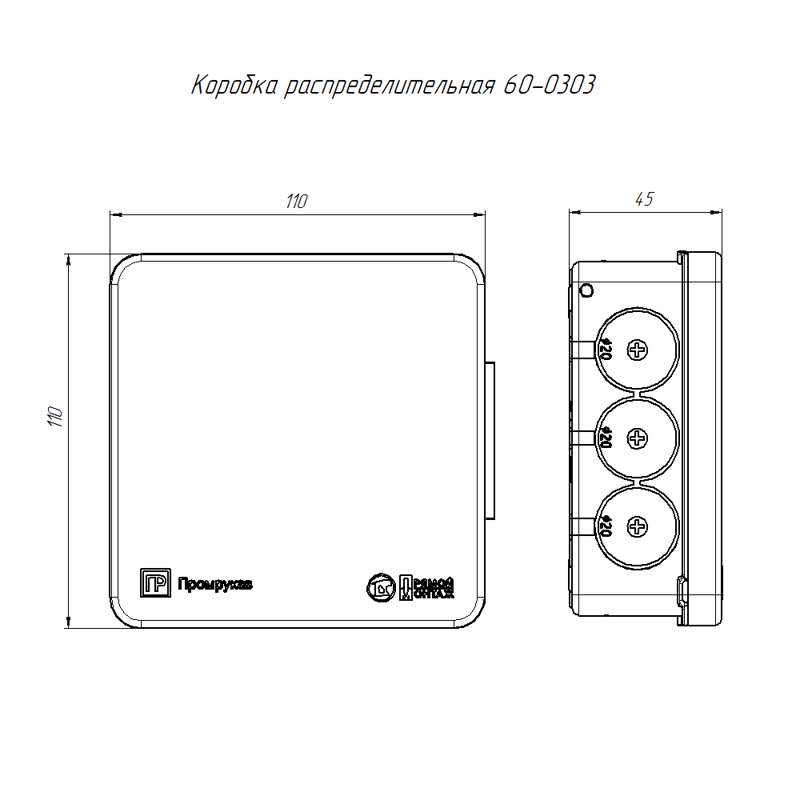 Длина х Ширина х Высота, мм — 110 x 110 x 45