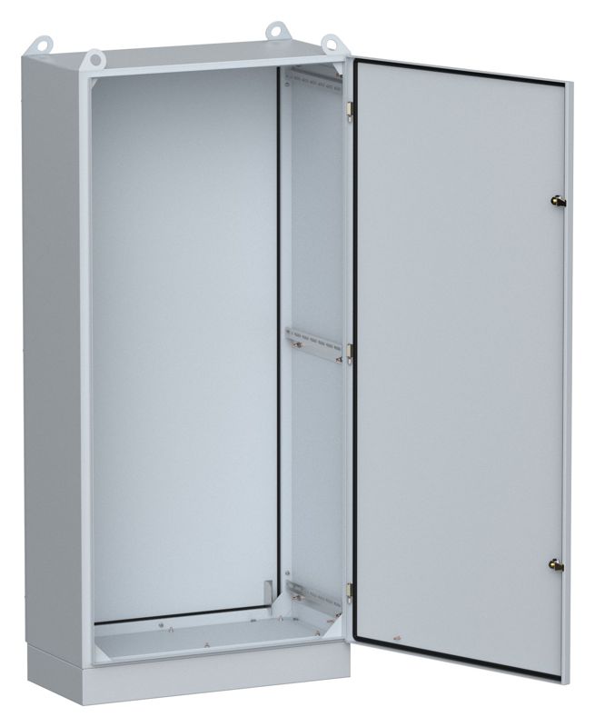 Сварной металлический корпус повышенной степени защиты IP54 с цоколем и съемной монтажной панелью (монтажная панель заказывается отдельно).