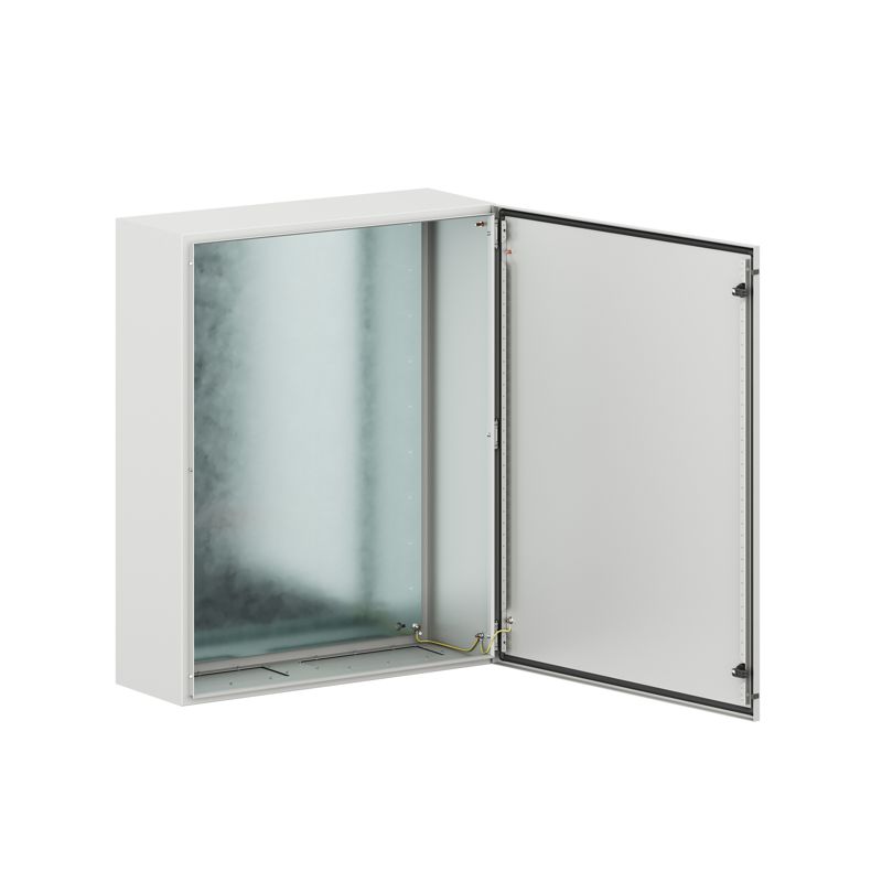 Навесные корпуса серии STE предназначены для систем автоматизации и распределения электроэнергии. Корпус, дверь, фланец серии STE изготавливаются из листовой стали толщиной 1,5 мм с атмосферостойким порошковым покрытием, цвет RAL7035. Монтажная плата изготовлена из оцинкованной стали толщиной 2,5 мм. Степень защиты IP66, ударопрочность IK10, сейсмостойкость 9 баллов по шкале MSK-64, климатическое исполнение УХЛ1, ОМ2, ОМ3, группа горючести Г1. Комплект поставки: корпус, дверь реверсивная, монтажная плата с двунаправленной разметкой, дверные рейки, поворотный замок 2 шт., сплошной фланец для ввода кабеля 2 шт., комплект заземления с проводами заземления. Габариты 1000x800x300 (ШхВхГ) мм.