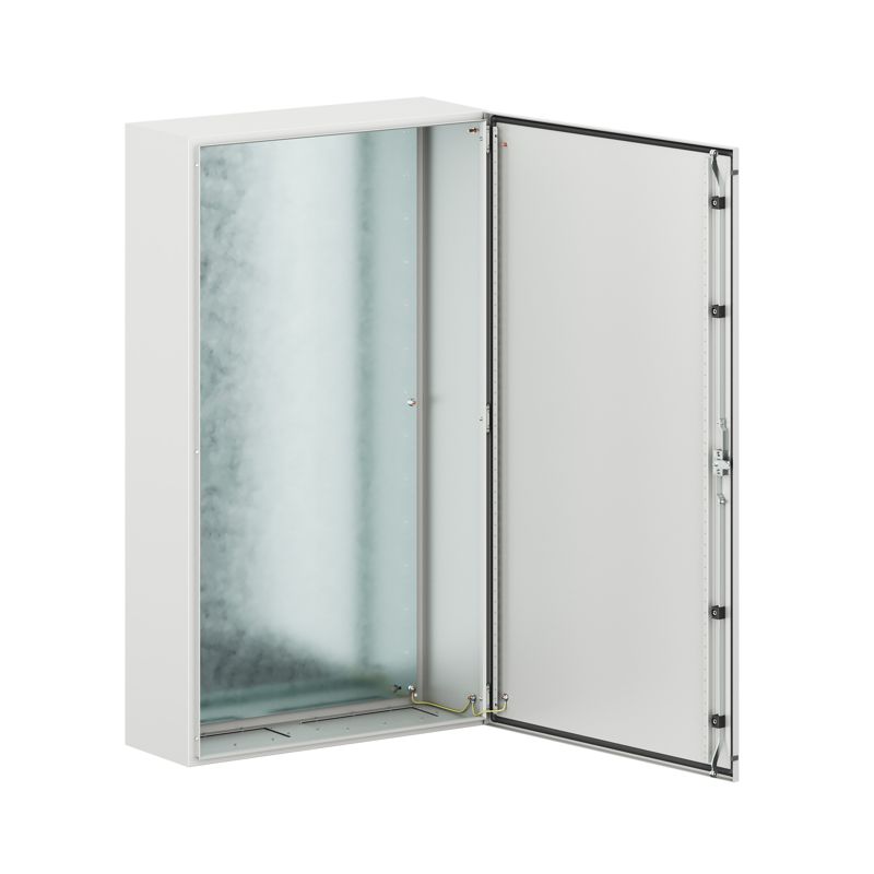 Навесные корпуса серии STE предназначены для систем автоматизации и распределения электроэнергии. Корпус, дверь, фланец серии STE изготавливаются из листовой стали толщиной 1,5 мм с атмосферостойким порошковым покрытием, цвет RAL7035. Монтажная плата изготовлена из оцинкованной стали толщиной 2,5 мм. Степень защиты IP66, ударопрочность IK10, сейсмостойкость 9 баллов по шкале MSK-64, климатическое исполнение УХЛ1, ОМ2, ОМ3, группа горючести Г1. Комплект поставки: корпус, дверь реверсивная, монтажная плата с двунаправленной разметкой, дверные рейки, ручка, сплошной фланец для ввода кабеля 2 шт., комплект заземления с проводами заземления. Габариты 1400x800x300 (ШхВхГ) мм.