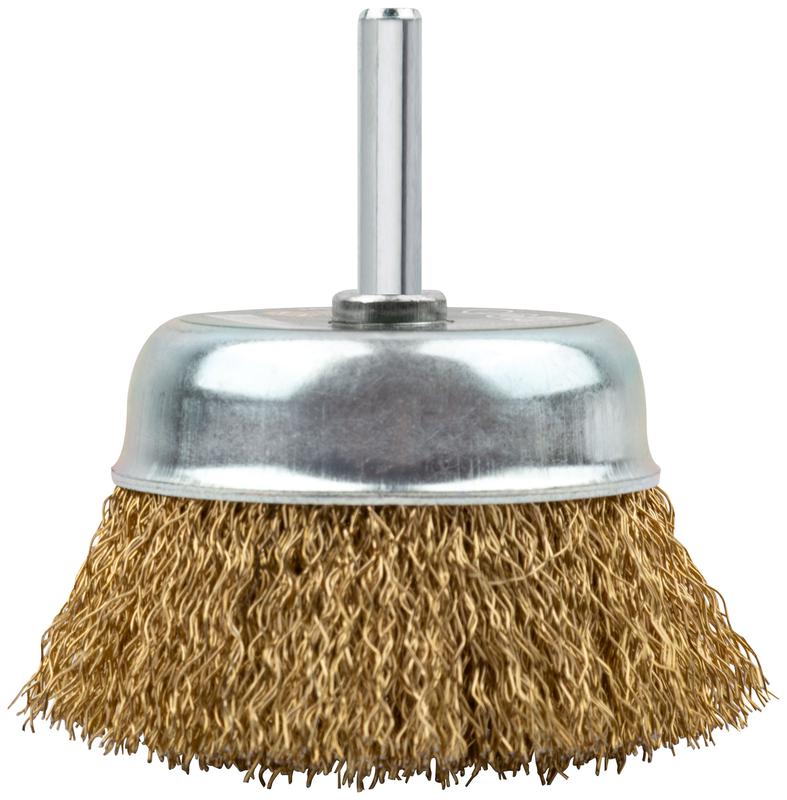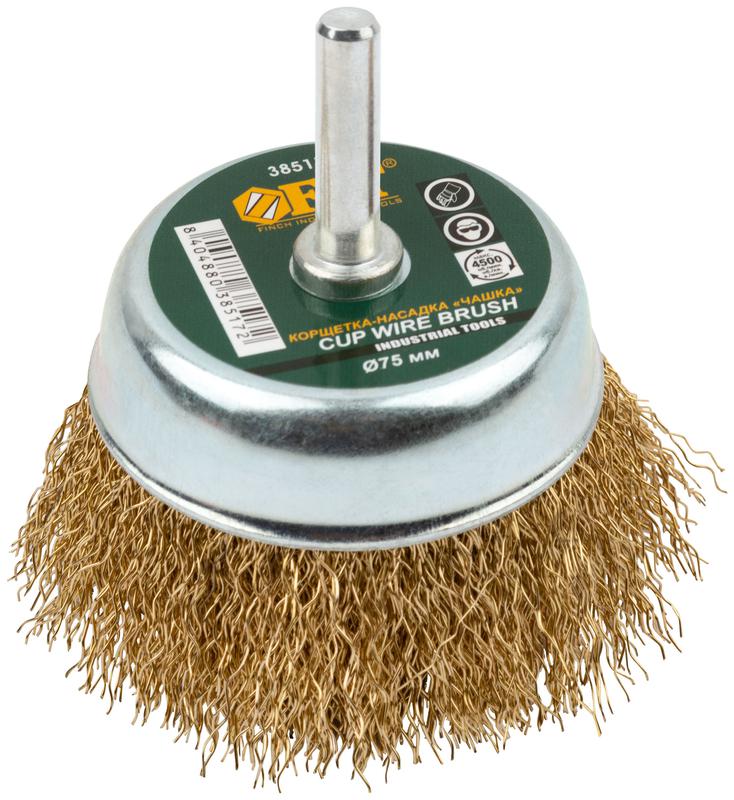 Корщетка-чашка со штифтом стальная латунированная волнистая проволока 75мм FIT 38517
