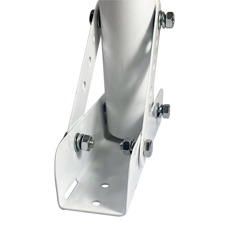 Кронштейн предназначен для установки консольных уличных светильников на вертикально несущие плоские поверхности, на опоры стальные, деревянные, бетонные. Крепится с помощью анкерных болтов или СИП ленты. Несущий элемент может фиксироваться под углом наклона к горизонтальной плоскости от 15 до 60 градусов с шагом 15 градусов.