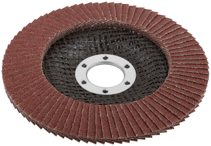 Тип 2 (Конический). Для обработки различных материалов. Используется с УШМ. 80 лепестков. Лепестки расположены под углом. Посадочный диаметр 22,2 мм. Материал: полимерная основа, образивный слой-оксид алюминия.