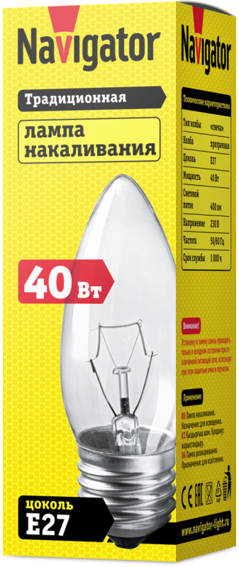 Лампа накаливания 94 328 NI-B-40-230-E27-CL Navigator 94328
