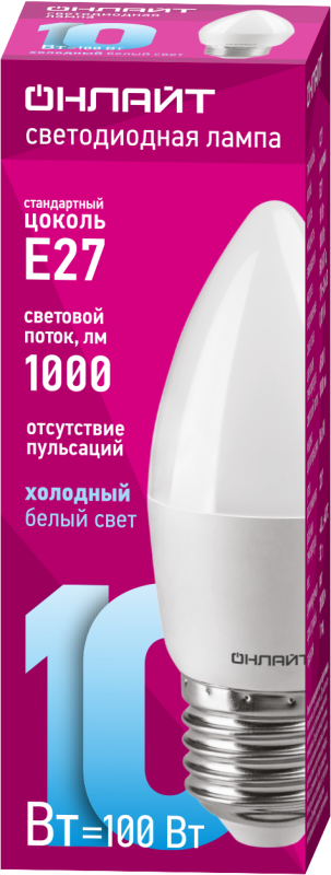 Лампа светодиодная 61 961 OLL-C37-10-230-6.5K-E27-FR 10Вт ОНЛАЙТ 61961
