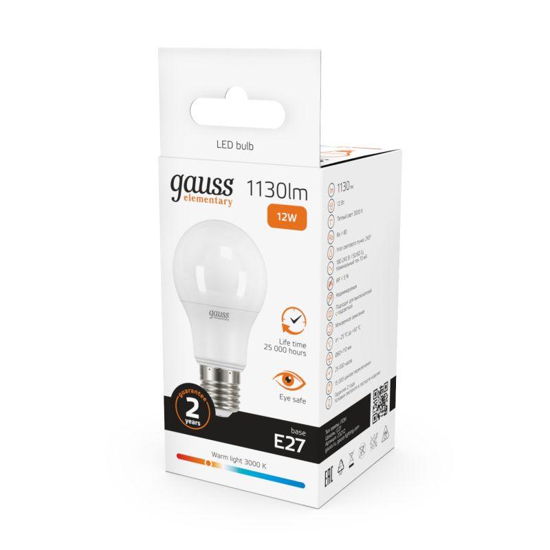 Лампа светодиодная Elementary 12Вт A60 3000К тепл. бел. E27 1130лм GAUSS 23212