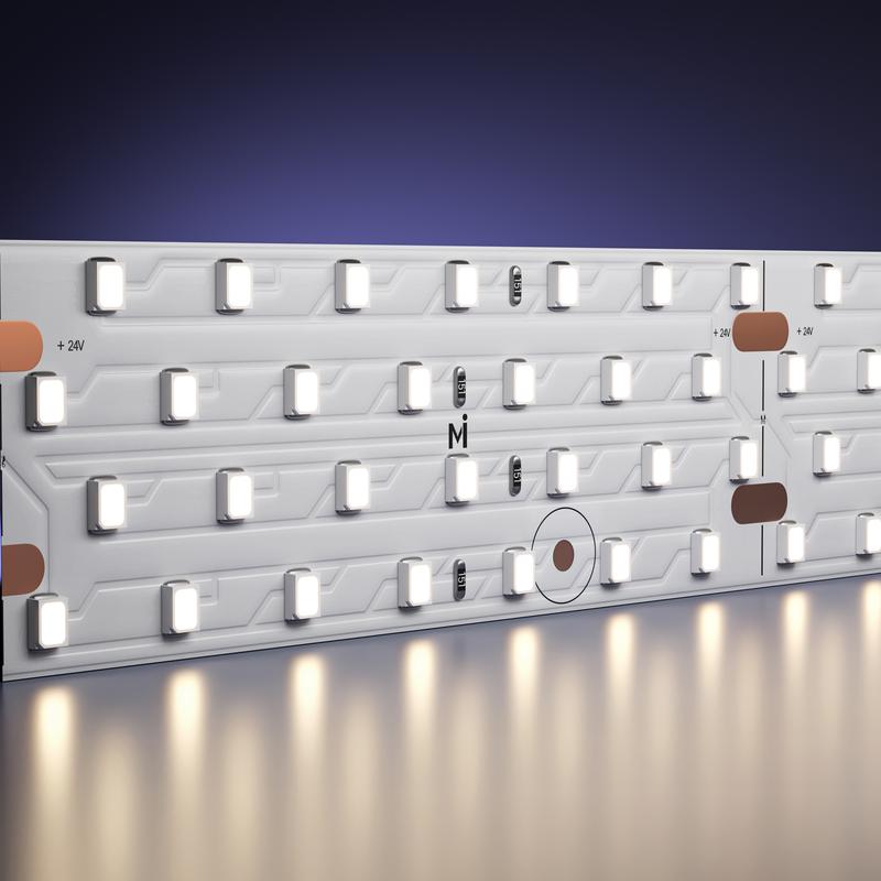 Широкая светодиодная лента мощностью 20 Вт/м, 27 Вт/м и 30 Вт/м в зависимости от выбранной модели. Цветовая температура - 3000К, 4000К и 6000К на выбор. Плотность светодиодов - 196 шт/м, 252 шт/м и 280 шт/м. Размеры - 15х5000 мм, 19х5000 мм, 36х2500 мм. Индекс цветопередачи >90Ra. Угол рассеивания 120°. Рабочее напряжение 24 В. Для создания накладных и подвесных светильников из алюминиевого профиля.