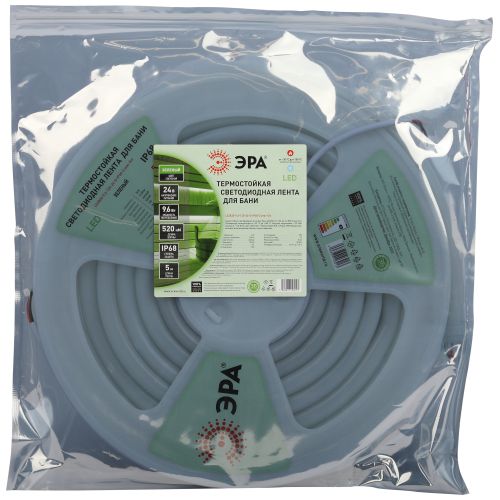 Лента светодиодная LS2835-9.6-120-24-G-IP68-5м 24В термостойкая для бани зелен. (в комплекте: 2 заглушки; 10 крепежей)(уп.5м) Эра Б0062354