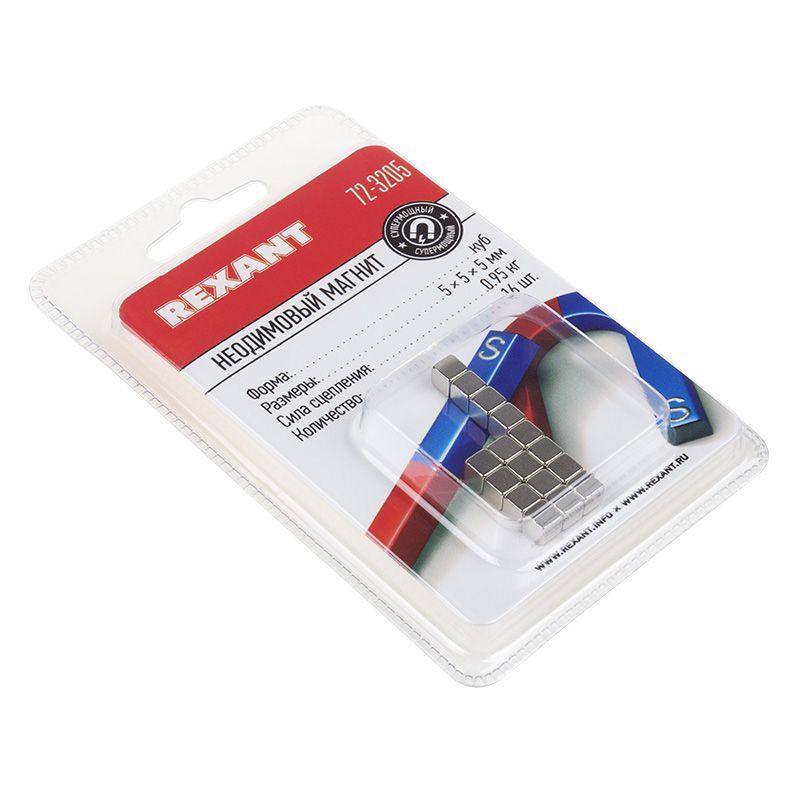 Магнит неодимовый куб 5х5х5мм сцепление 0.95кг (блист.16шт) Rexant 72-3205