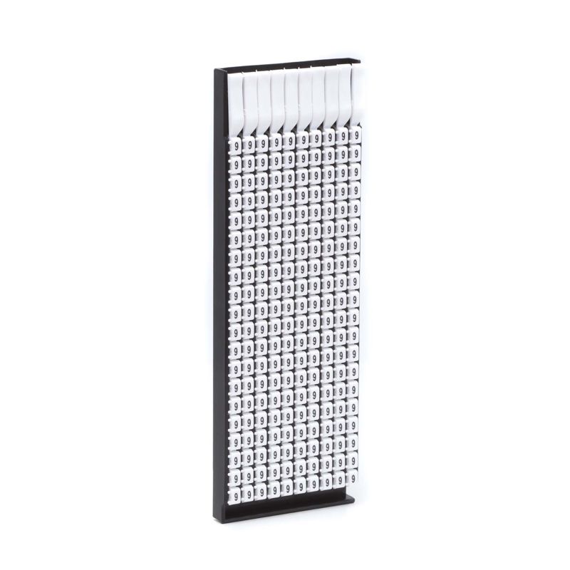 Ручная маркировка системы MARK 3 для маркировки проводов без разъединения электрической цепи из полиамида 6.6. Температура эксплуатации от –40 до +100 °С. Боковые штифты надежно фиксируют соединение друг с другом и позволяют добиться точного выравнивания маркеров. Цвет маркеров соответствует международной кодировке. Символ "9" черным цветом на белом маркере для сечения провода 0.5-1.5 мм2. 200 маркеров в упаковке.