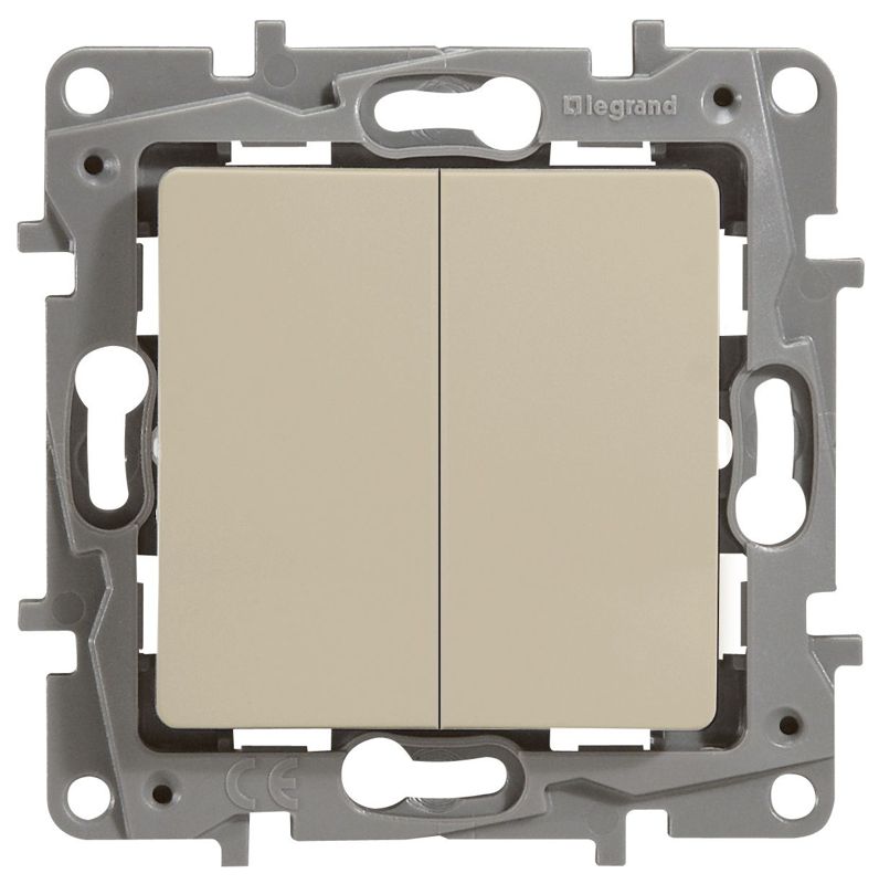 Переключатель двухклавишный ETIKA для скрытого монтажа, номинальный ток 10 А. Предназначен для управления двумя нагрузками с одного или с двух мест.