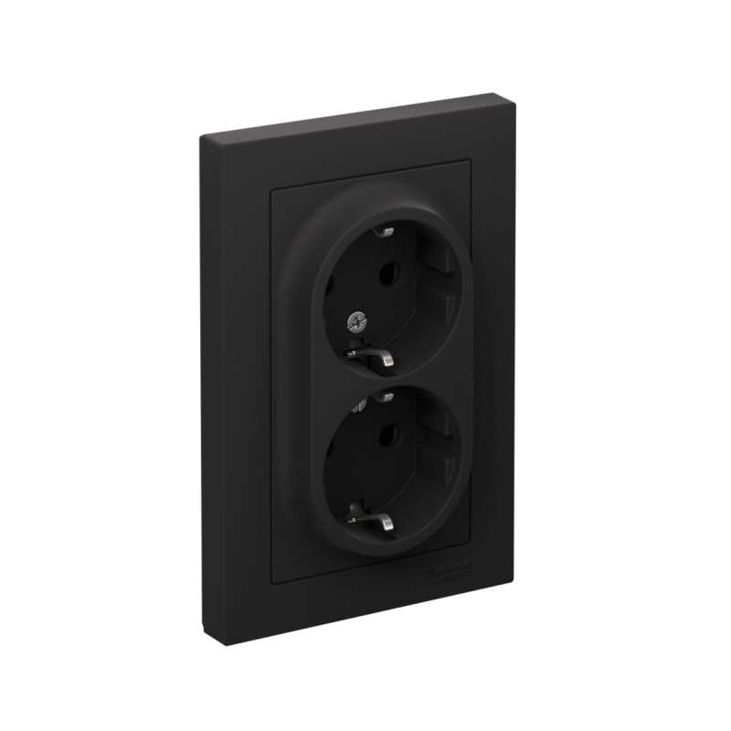 Розетка двойная в сборе Systeme Electric (ранее Schneider Electric) серии AtlasDesign в цвете карбон с заземлением и шторками подходит для сетей 250 В, на ток 16 А. Заземляющий контакт обеспечивает дополнительную защиту от удара электрическим током. Двойная розетка позволяет подключить два устройства в одном месте. Изделие поставляется в комплекте с рамкой того же цвета. Благодаря покрытию «soft touch» к изделию приятно прикасаться.