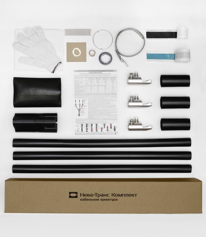 Муфта кабельная концевая внутренней установки 10кВ КВТпН 3х(35-50мм) с болтовыми наконечниками Нева-Транс Комплект 22020054