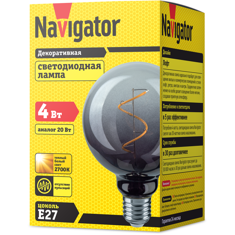 Лампа светодиодная 14 498 NLL-F-G95-4-230-2.7K-E27-LSBT прозрачная E27 220-240В Navigator 14498