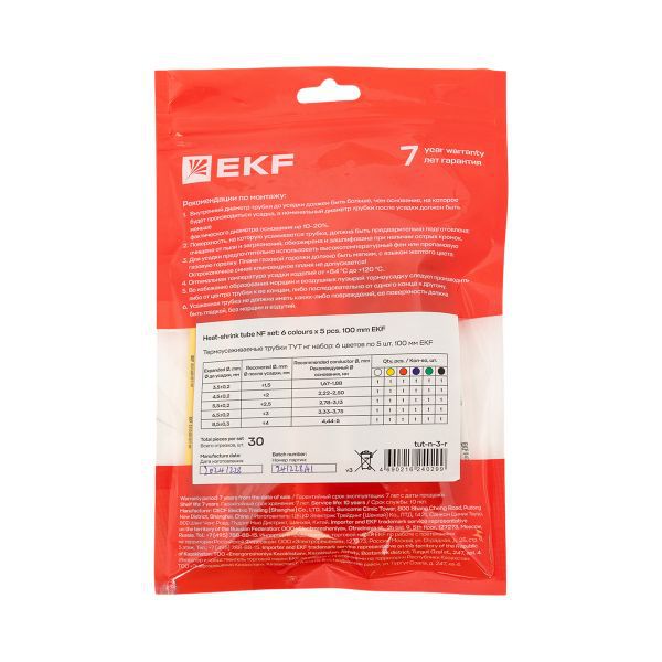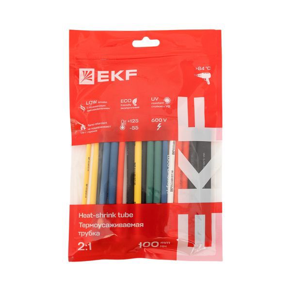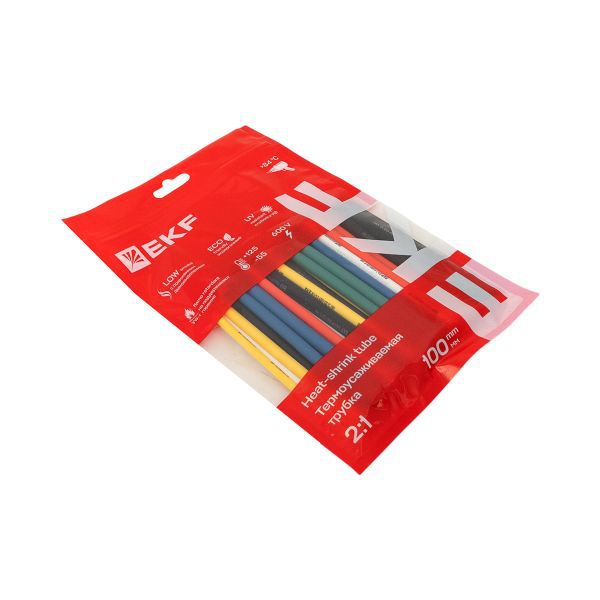 Набор трубок термоусадочных 6 цветов по 5шт. 3/1.5, 4/2, 5/2.5, 6/3, 8/4 (6 цветов по 5шт 100мм) PROxima EKF tut-n-3-r -