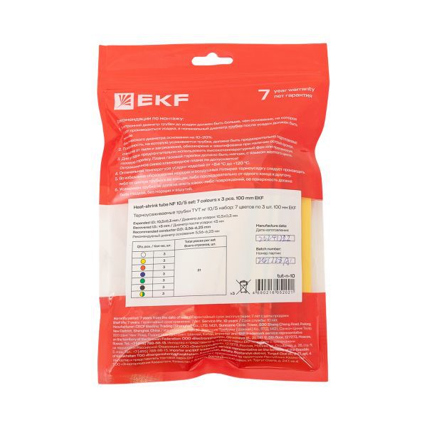 Набор трубок термоусадочных тонкостен. 10/5 (7 цветов по 3шт 100мм) EKF tut-n-10