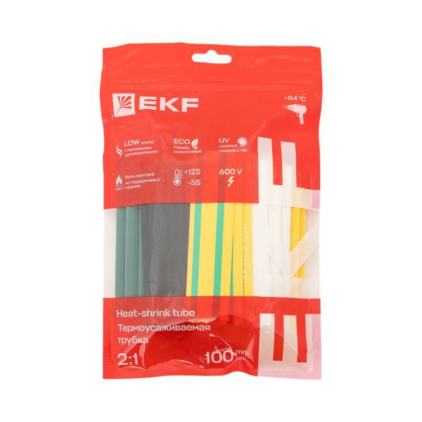 Набор трубок термоусадочных тонкостен. ТТУ 2/1; 4/2; 6/3; 8/4 (З; С; К; Ч) 20х8см разноцвет. IEK UDRS-D2-D8-10-3