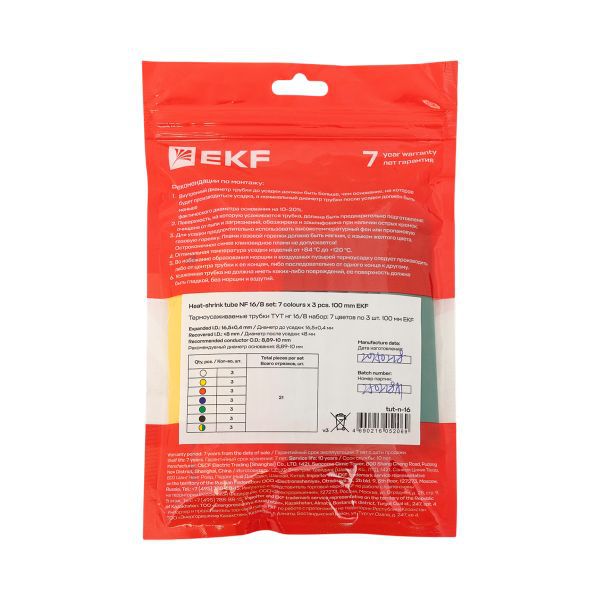 Набор трубок термоусадочных тонкостен. 16/8 (7 цветов по 3шт 100мм) EKF tut-n-16