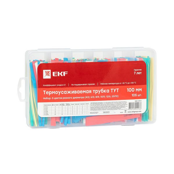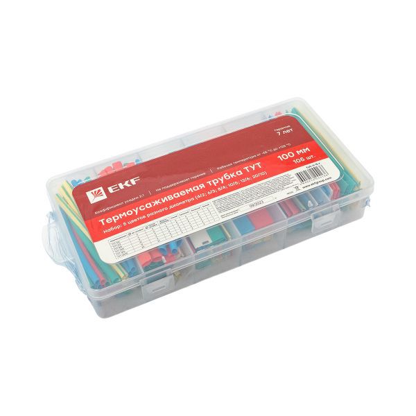 Набор трубок термоусадочных ТУТ 4/2; 6/3; 8/4; 10/5; 12/6; 20/10 100мм бокс 5 цветов 105шт PROxima EKF tut-n-5-r -