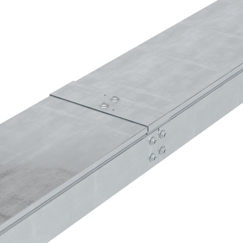 В случае, если крышка лотка была отрезан неровно и при соединении лотков с крышкой возникает стык, он может быть закрыт соединительной пластиной CGС. Накладка также применяется для дополнительного укрепления мест стыков. Исполнение – "сталь, оцинкованная по методу Сендзимира", применяется с лотками шириной 50 мм.