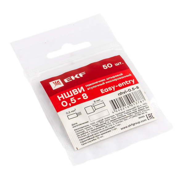 Наконечник штыревой втулочный изол. НШвИ 0.5-8 (уп.50шт) EKF nhvi-0.5-8 -