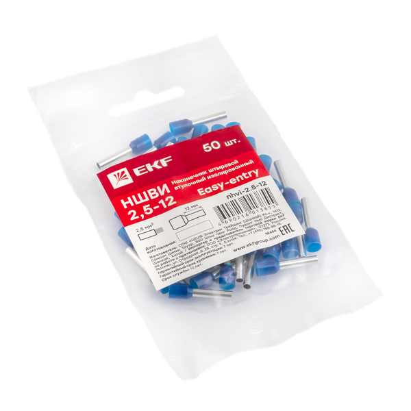 Наконечник штыревой втулочный изол. НШвИ 2.5-12 (уп.50шт) EKF nhvi-2.5-12