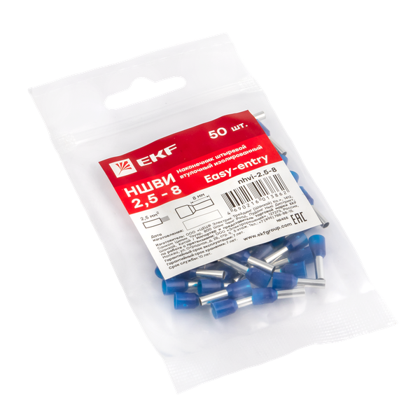 Наконечник штыревой втулочный изол. НШвИ 2.5-8 (уп.50шт) EKF nhvi-2.5-8